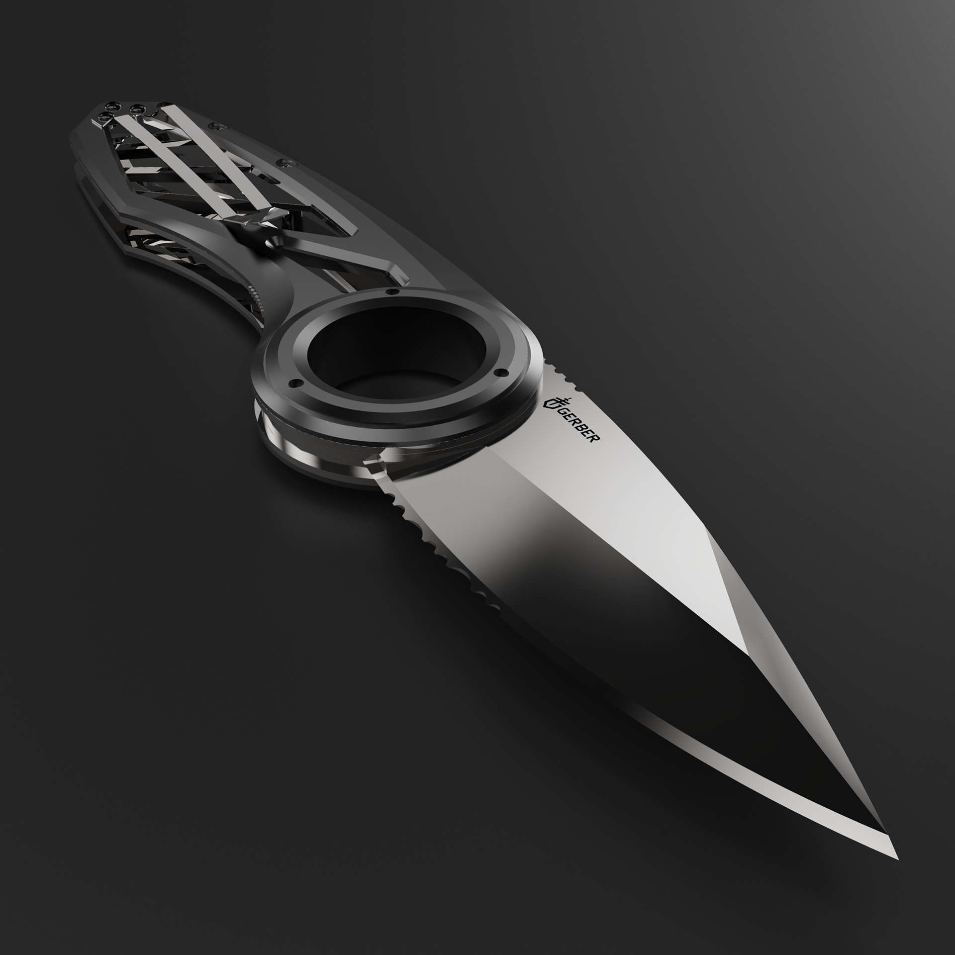 Modeling this Gerber knife presented a significant challenge due to its intricate handles and detailed blade. However, the client was satisfied with the final results.